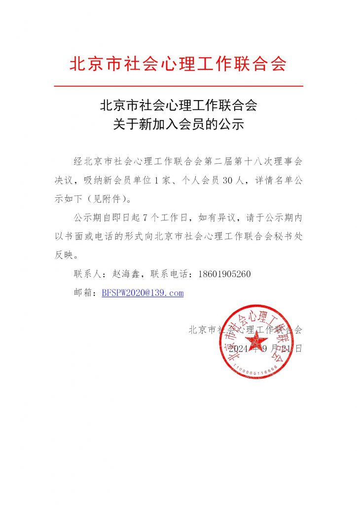北京市社会心理工作联合会关于新加入会员的公示 – 北京市社会心理工作联合会-欧亿平台在线登录注册