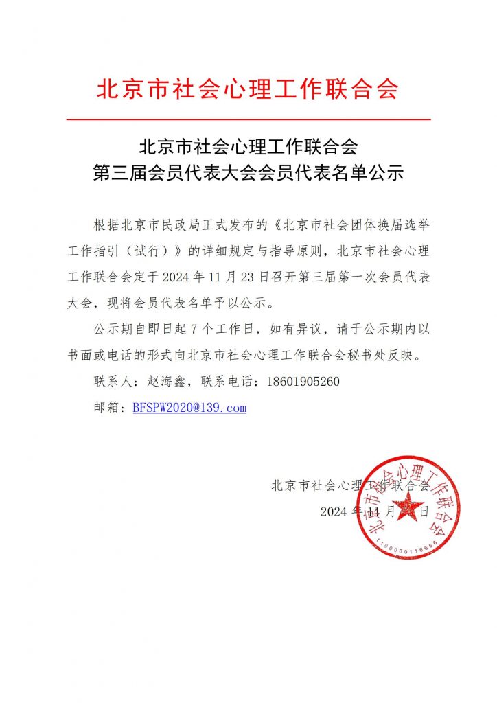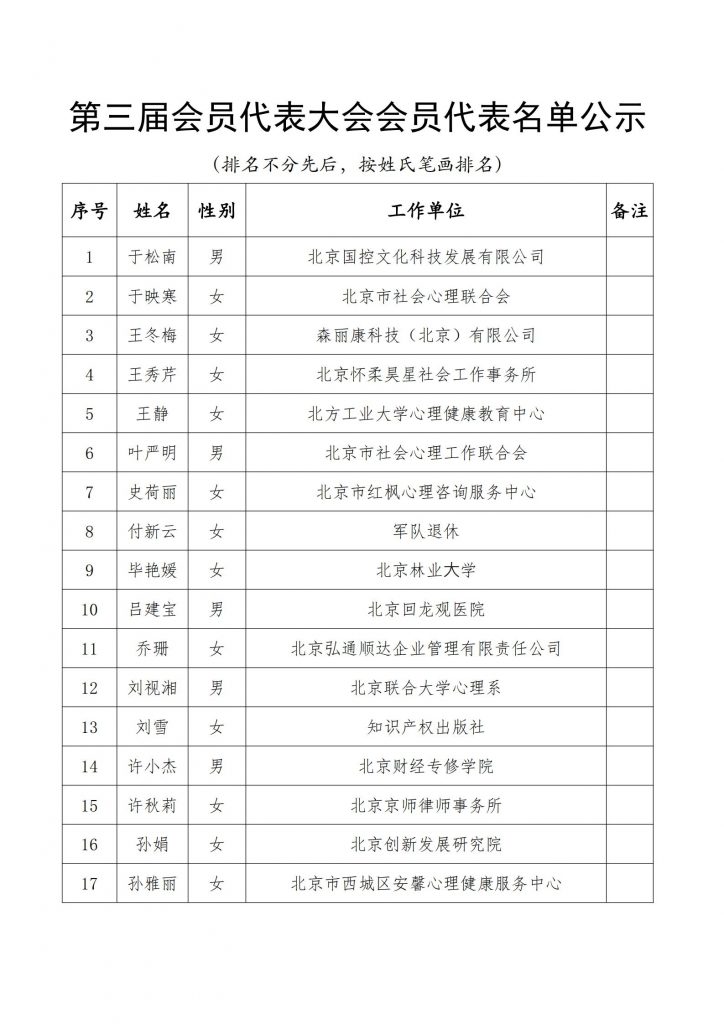 北京市社会心理工作联合会第三届会员代表大会会员代表名单公示 – 北京市社会心理工作联合会-欧亿平台在线登录注册